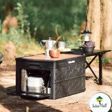 علاوه بر استفاده بهعنوان جعبه ذخیرهسازی، زمانی که جعبه بهعنوان میز مورد استفاده قرار میگیرد، فضای مناسبی برای انجام فعالیتهای مختلف مانند خوردن غذا، نوشیدن یا حتی استفاده از لپتاپ یا وسایل دیگر فراهم میآورد. بنابراین، این جعبه نهتنها بهعنوان وسیلهای برای نگهداری وسایل، بلکه بهعنوان یک میز کاربردی در کمپها و سفرهای شما عمل میکند.