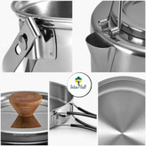 دستههای مقاوم و ایمن: دستههای ظروف از استیل ضد زنگ با روپوش سیلیکونی ساخته شدهاند که علاوه بر مقاومت بالا، از دست شما در برابر حرارت محافظت میکند و استفاده از ظروف را راحتتر و ایمنتر میسازد.
