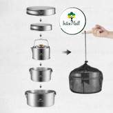 کمپکت و قابل حمل: ابعاد کل مجموعه به صورت پک شده 22×13.6 سانتیمتر است که نشاندهنده طراحی جمعوجور و کمحجم این ست ظروف است. با وزن کل 1680 گرم، این مجموعه بسیار سبک و مناسب برای حمل در سفرهای کمپینگ و کوهنوردی است.